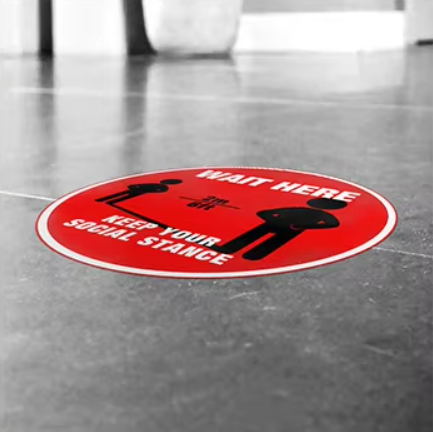 Impressão personalizada Anti-derrapante Removível Auto-adesivo Mármore Sinal de Aviso Social Distanciamento PVC Piso Adesivo Decalque