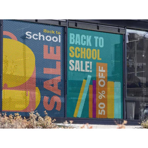 Perforierte Aufkleber Poster Benutzer definierte Grafiken UV Die Cutt One Way Vision Fenster Glas Aufkleber für Shop front Promotion