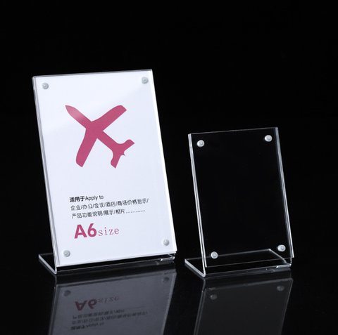 A4อะคริลิคใส A5ขนาด A6ตั้งโต๊ะรูปทรงตัว L แบบแนวนอนออกแบบได้ตามต้องการ